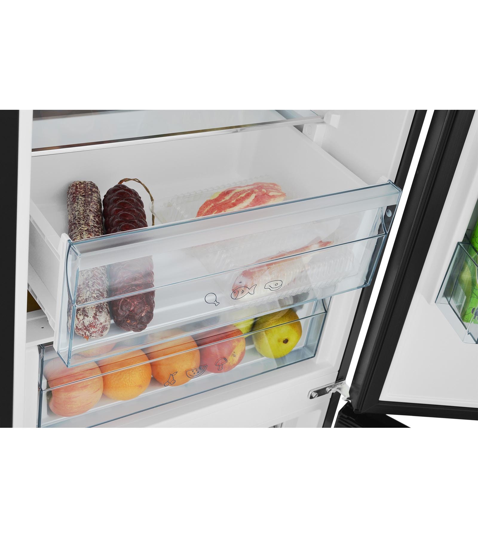 Зона свежести гарантирует, что пища внутри отделения остается свежей до 2-х раз дольше при идеальной температуре около 0 ºC. Разместите внутри замороженное мясо или рыбу для размораживания перед употреблением и убедитесь в отсутствии неприятного запаха и замечательного качества продуктов!