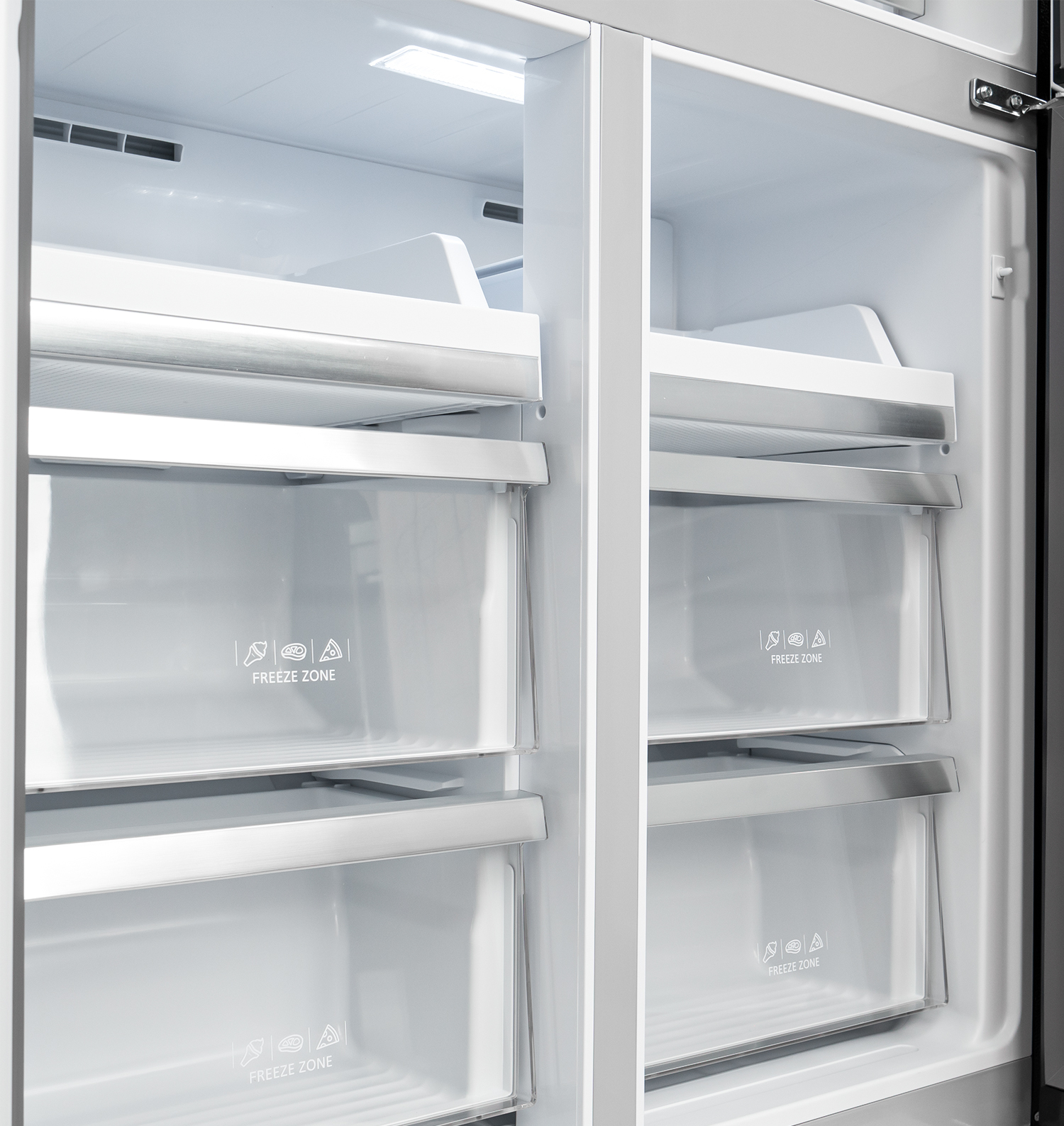 Холодильник LEX LCD 505 станет отличным выбором для большой семьи и стильной кухни. Объем 505 литров позволит разместить все, чего вам захочется. Охлаждение и заморозка происходят по системе No Frost, без образования инея, поэтому вам не нужно тратить время на размораживание. Современный инверторный компрессор работает эффективнее, тише и быстрее обычного, а технология LEX Volume Stream Air обеспечивает более равномерное охлаждение. Задняя стенка холодильной камеры покрыта металлом с высокой теплопроводностью, благодаря чему система охлаждения быстрее выравнивает колебания температуры. Модель типа CROSS DOOR имеет верхнее холодильное и два независимых нижних морозильных отделения. Такая конструкция помогает поддерживать подходящие условия хранения внутри каждой камеры, даже если вы часто открываете дверцы. Диапазон температур: +8…–23 °C, но с функцией суперзаморозки можно быстро снизить температуру в морозильном отделении до –28 °С. Похожий режим есть и в холодильной камере. Холодильник оснащен функцией сохранения температуры в течение 12 часов, которая выручит при отключении электричества. Благодаря понятной электронной панели управления и яркой подсветке вы всегда сможете точно контролировать условия хранения. А когда такой возможности нет, будет достаточно одного нажатия, чтобы автоматически установить в каждом отделении температуры, которые позволяют экономить энергию, но не влияют на качество хранения продуктов. Модель представлена в восьми вариантах оформления, которые отличаются цветом, текстурой и материалом отделки.
