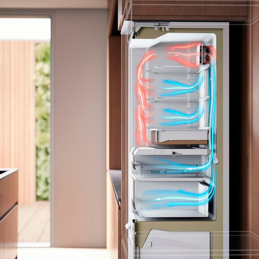 Суперзаморозка Fast Freeze (в морозилке) и суперохлаждение Super Cool (в основном отделении) могут быть запущены как вручную, так и автоматически. Техника сама заботится, чтобы внутри камер не происходила потеря холода. Это особенно актуально, если пользователь после шоппинга решил загрузить большое количество свежих продуктов, которые активно выделяют тепло.