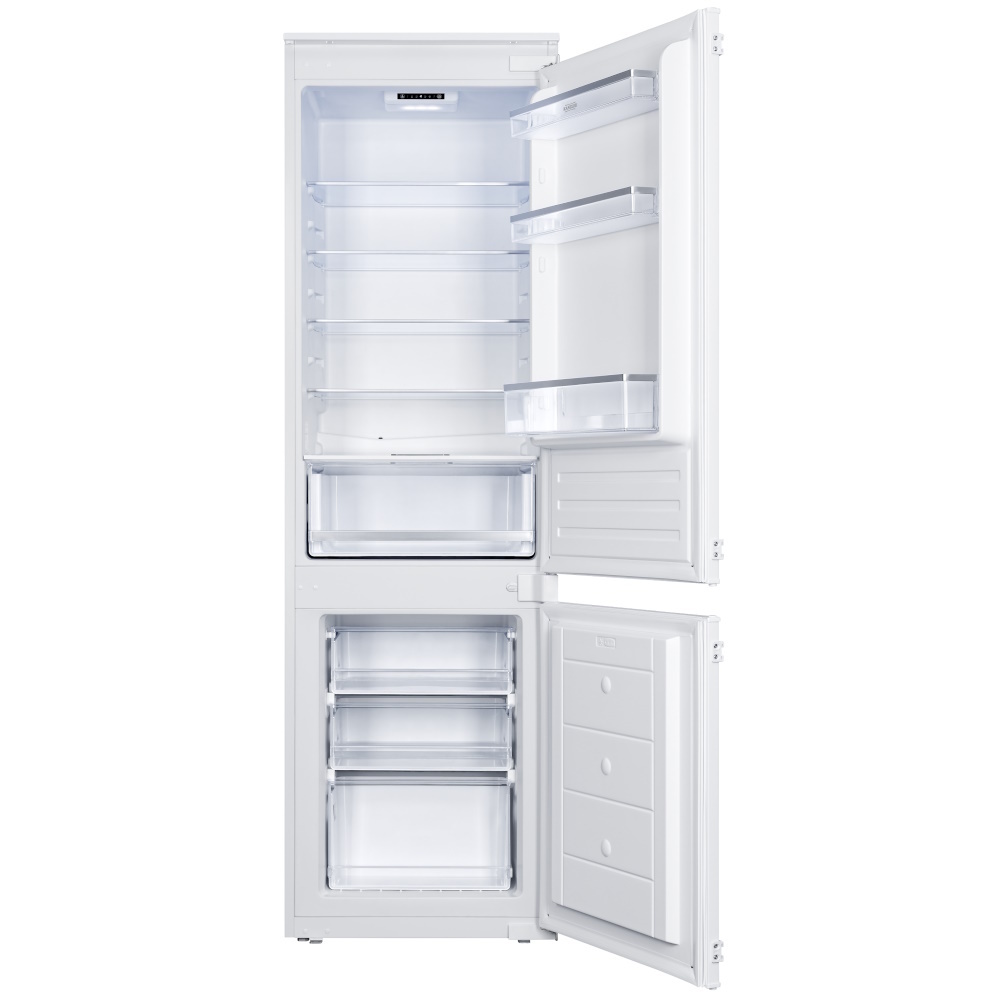 4 регулируемые полки, 1 ящик для овощей с контролем влажности, 3 ящика и 2 полки в морозильной камере, лоток для яиц, лоток для льда