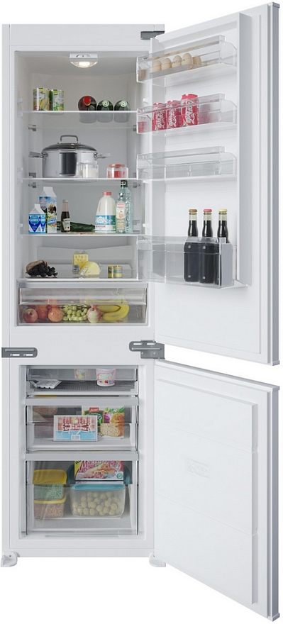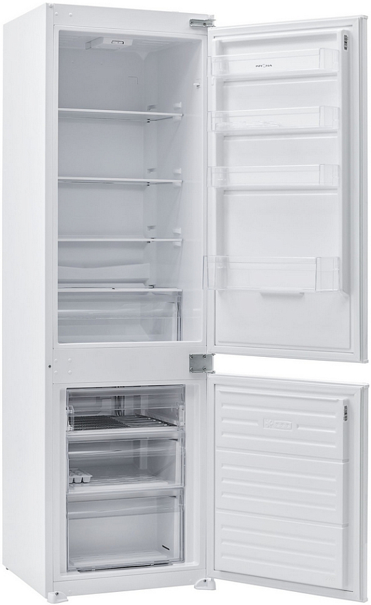 Холодильник Krona BALFRIN — новинка со встраиваемым типом установки для ниши размерами 179×56×57 см и двумя камерами. Для удобства пользования морозильное отделение расположено внизу. Управление электромеханическое, легкое и понятное, с автономной настройкой нужной температуры в камерах. Холодильник работает тихо, уровень шума всего 38 дБ. Класс энергопотребления А+.