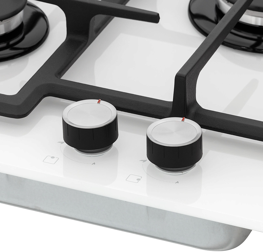 Варочная панель Krona RITTER 67/60 WH имеет конфорку "Тройное пламя", с помощью ее можно быстрей вскипятить воду. Есть газ-контроль, он полностью перекроет газ, если пламя погасло. Автоматический электроподжиг, встроенный в ручки, поможет зажечь огонь без спичек.