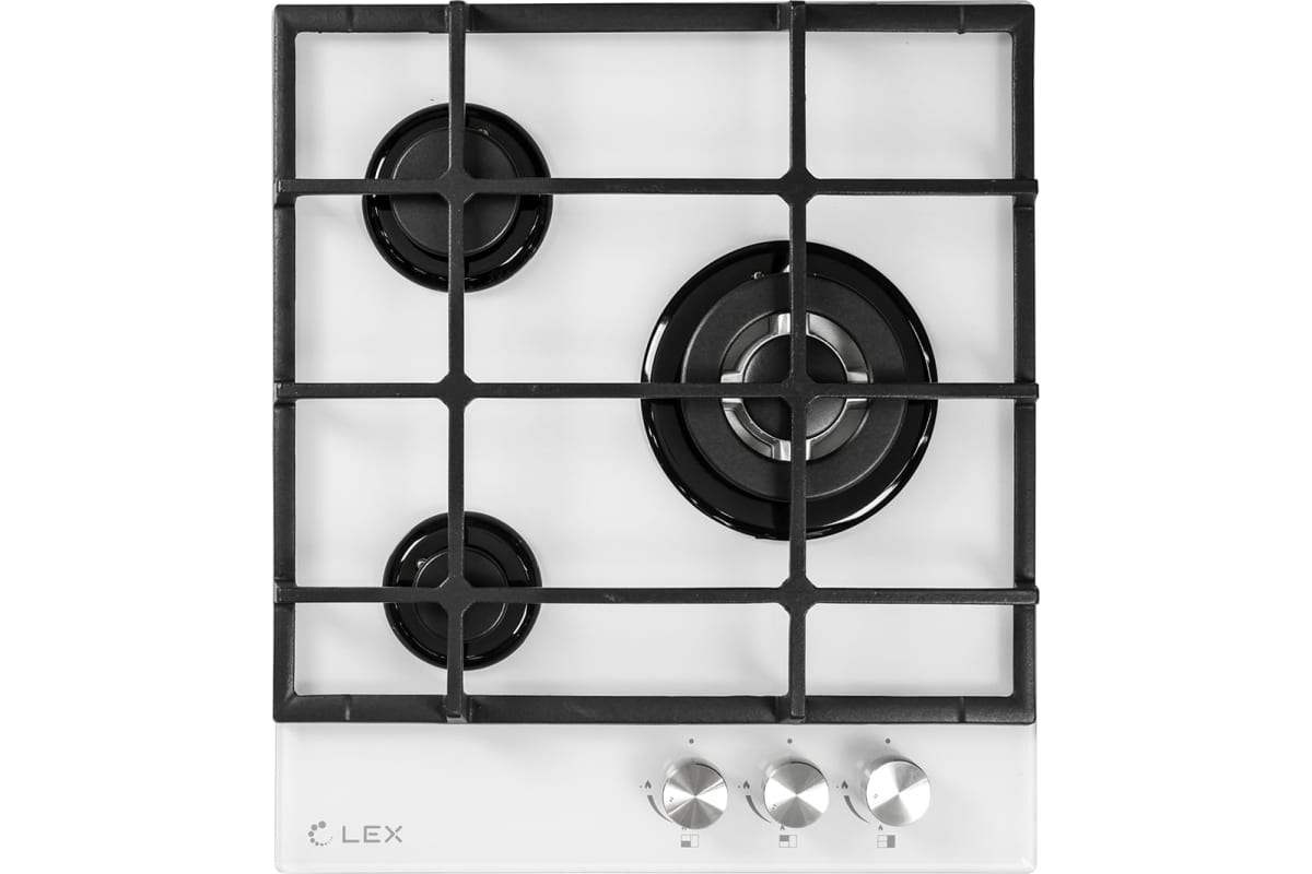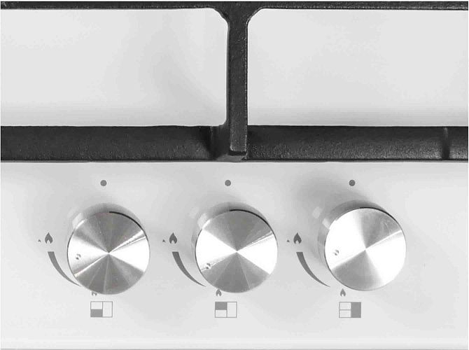 Механическое управление, чугунные решетки, газ контроль, электроподжиг. Мощность конфорок: 1 х 3500 Вт, 1 х 1750 Вт, 1 х 1000 Вт (макс. мощность 6250 Вт)