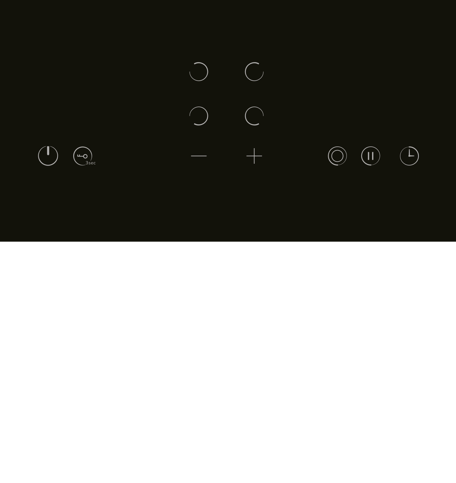 Управление Сенсорное, Таймер Количество конфорок – 4 конфорки Таймер конфорок Есть