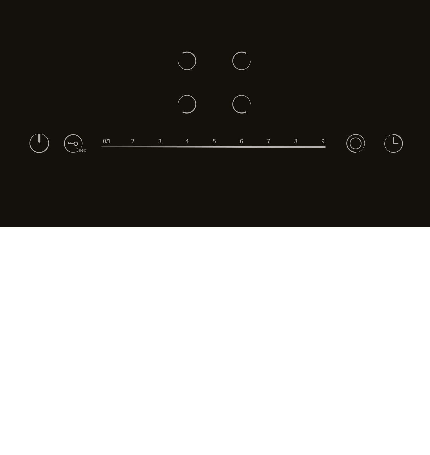 Управление Слайдерное, Таймер Количество конфорок – 4 конфорки Таймер конфорок Есть Материал Стеклокерамика