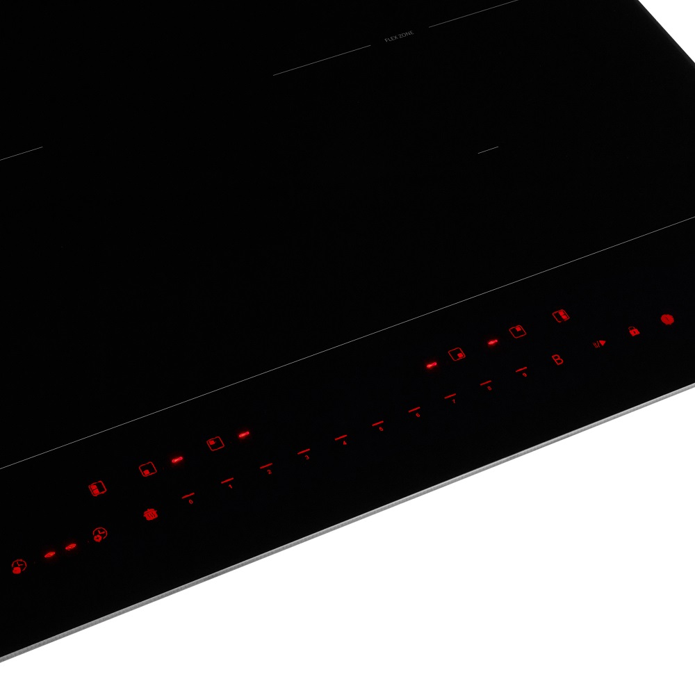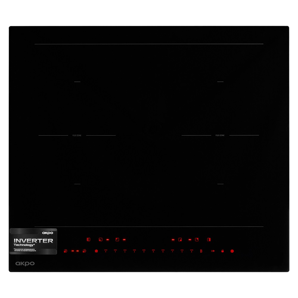 Варочная индукционная поверхность польского бренда AKPO (АКПО) с сенсорным управлением, двумя Flex зонами с 4 конфорками (по 1850 Вт), инверторным нагревом на всех уровнях мощности, а также функциями ускоренного нагрева (Booster) и распознавания посуды.