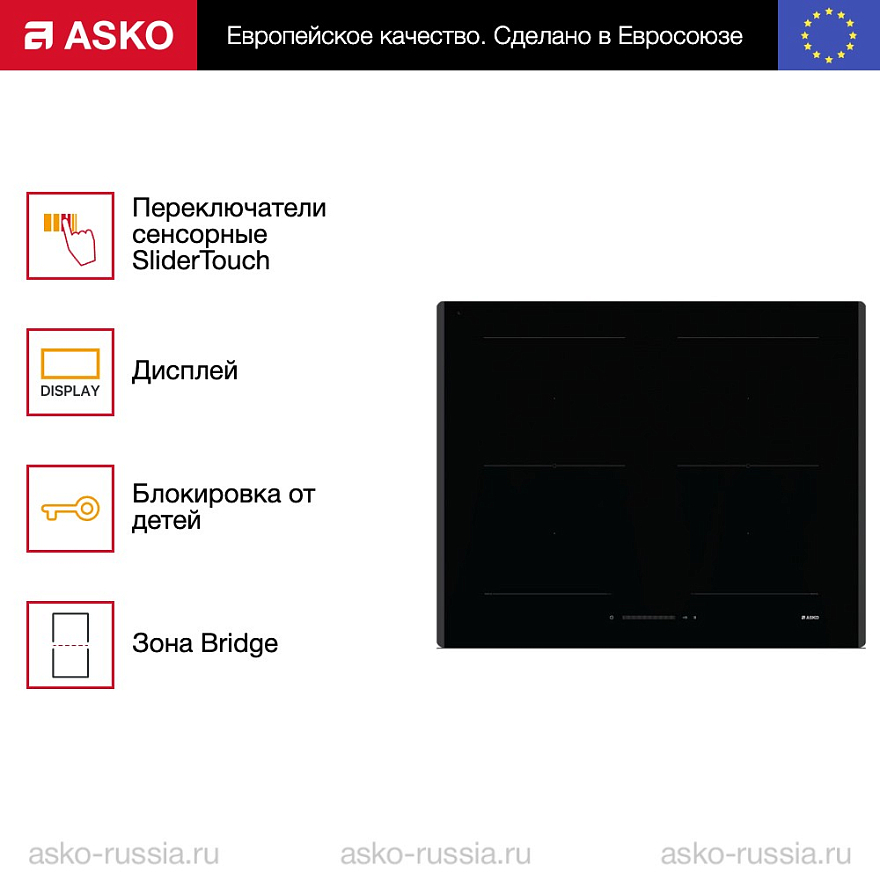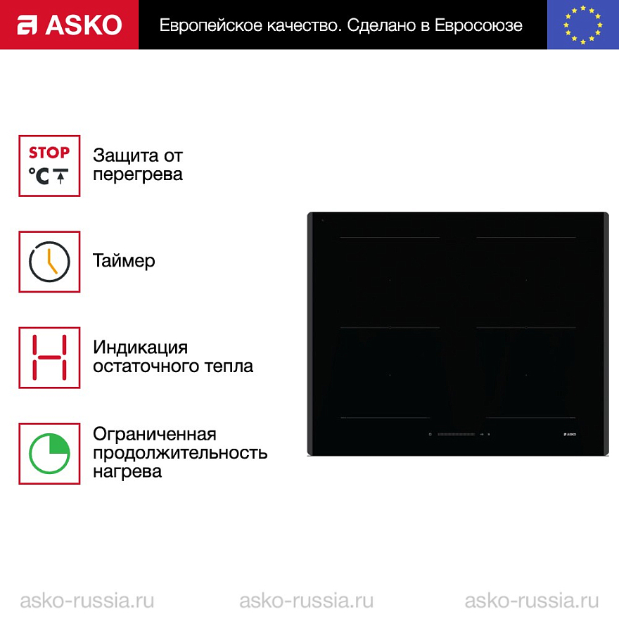 Таймер позволяет установить работу конфорки на определённое количество минут. Когда время истечет, зона автоматически выключается. После отключения плиты индикация остаточного тепла остаётся активной до тех пор, пока варочная панель Аско HI1631G не остынет. Это предотвращает случайное прикосновение к горячей поверхности. Блокировка от детей позволяет сделать панель управления неактивной, чтобы малыши или любопытные животные не могли включить прибор или изменять настройки разрешения взрослых.