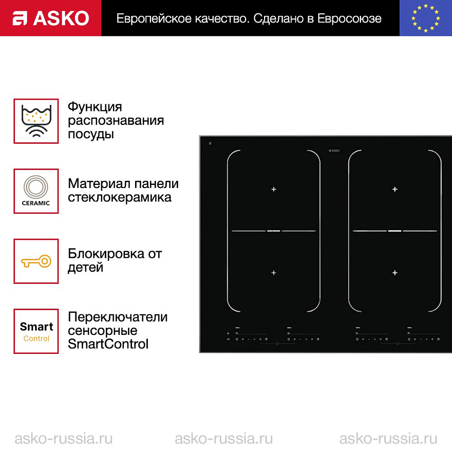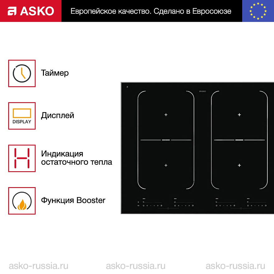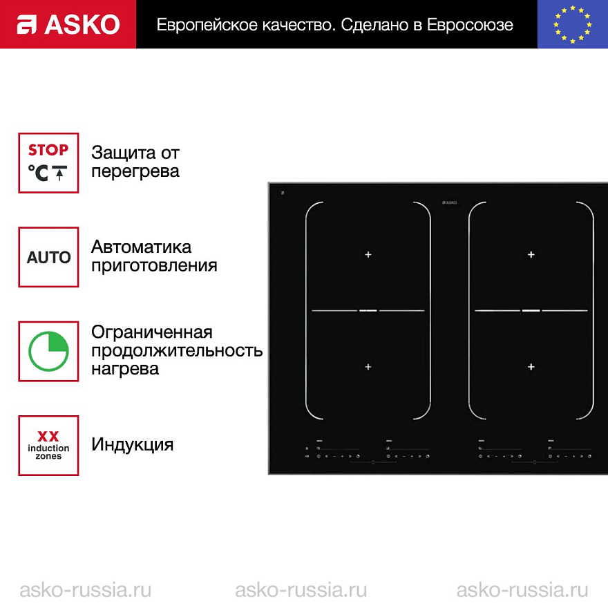 Варочная панель Asko HI1655G — это высококачественное устройство, произведенное в Словении. На технику предоставляется гарантия 24 месяца. Компактные размеры прибора (64.4 см в ширину, 52.2 см в глубину и 6.4 см в высоту) идеально подойдут для любой кухни. Монтаж осуществляется над столешницей, что позволяет экономить пространство и обеспечивает удобство использования.