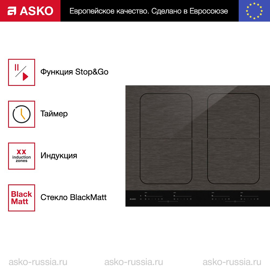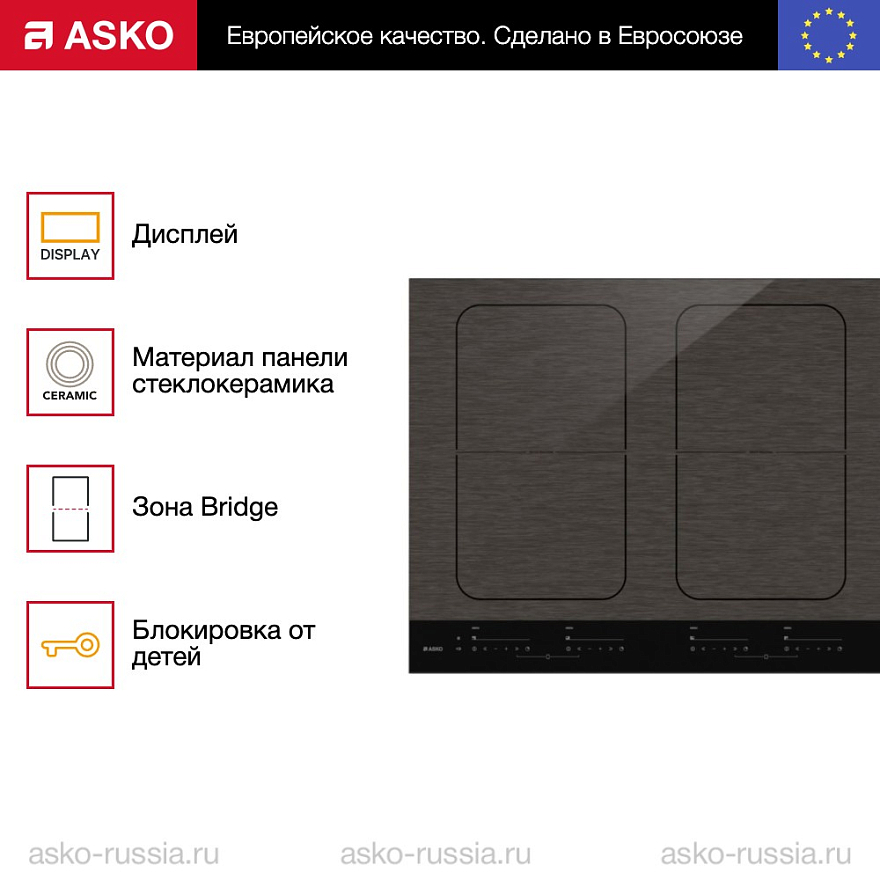 Варочная панель Asko HI1655M Asko HI1655M отличается современным минималистичным дизайном. Она выполнена в матовом антраците, что придает ей стильный вид. Сенсорное управление SmartControl обеспечивает лёгкость при выборе нужных настроек. Она удобна и интуитивно понятна. Функция распознавания посуды позволяет определить размер кастрюль и сковородок, а также конкретную конфорку, на которую установили утварь. Это сокращает потребление электроэнергии, так как прибор автоматически регулирует зону нагрева под размер дна.