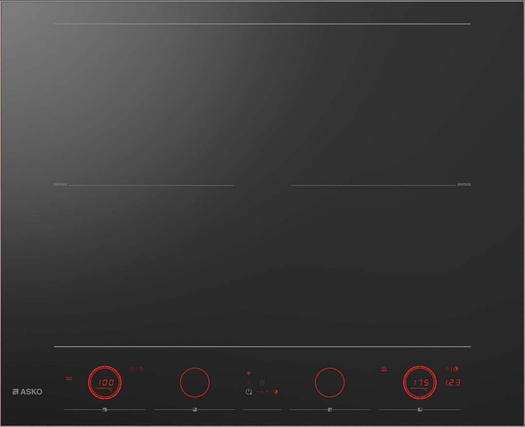 Варочная панель Asko HID654GC — индукционная модель черного цвета с тонкой металлической рамкой для придания прочности стеклокерамической поверхности. Сенсорное управление IrisControl выполнено в форме круговых слайдеров, которые помогут быстро настроить необходимую мощность. Левые и правые конфорки можно объединять в общие поля благодаря опции Bridge. Автоматическое определение наличия посуды на поверхности добавляет комфорт использования.
