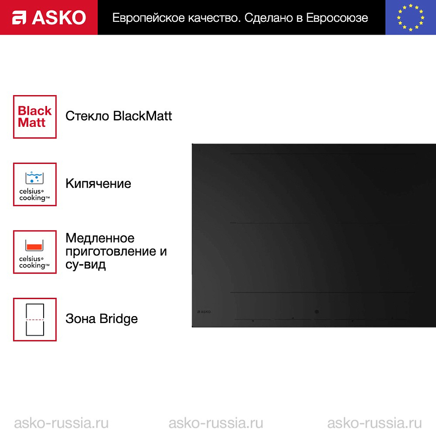 Варочная панель Asko HID754MFC — это инновационное решение для вашей кухни, обладающее всеми необходимыми функциями для комфортного приготовления пищи. Основное преимущество этой модели — индукционный способ нагрева, который обеспечивают быстрый и точный нагрев благодаря использованию электромагнитных полей. Эта технология запускает мгновенное нагревание дна и стенок посуды, а также высокий коэффициент полезного действия, что позволяет сократить время работы и экономить энергию. С ее помощью вы сможете готовить блюда любой сложности.