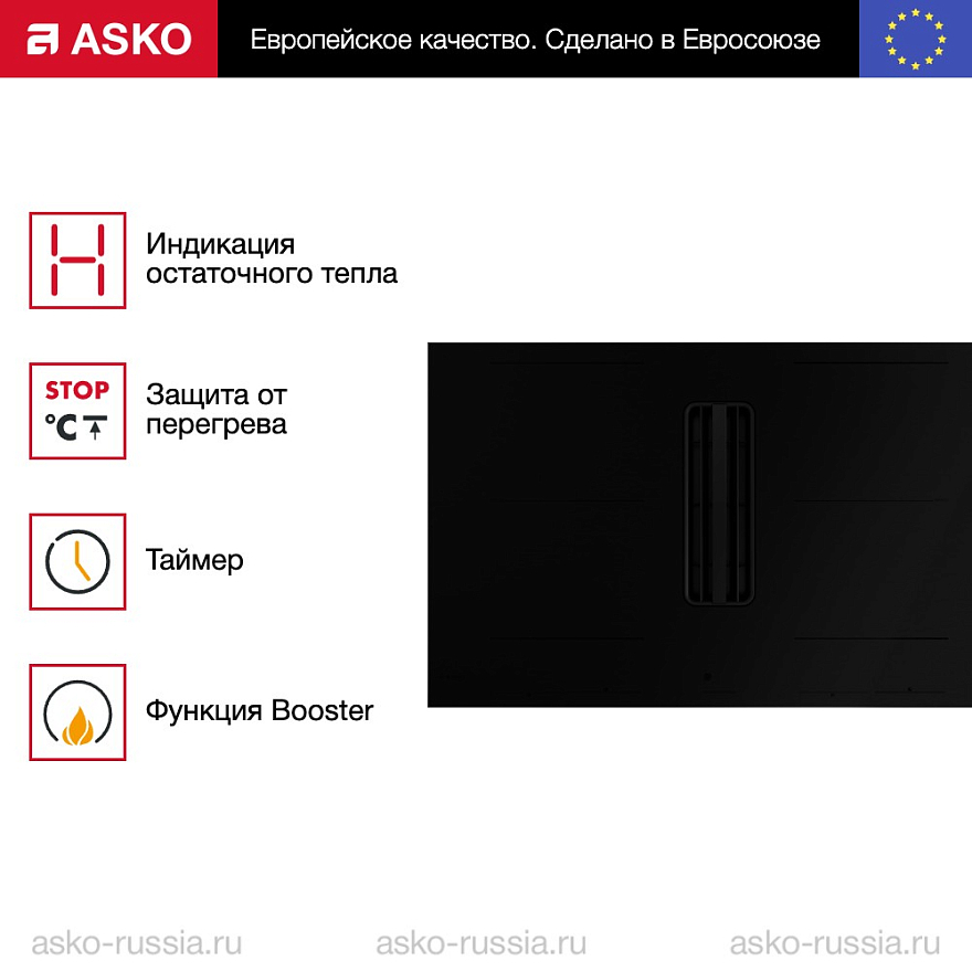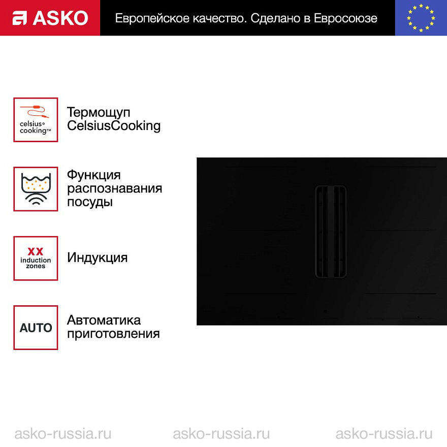 Главная Интернет-магазин Варочные панели Индукционные ASKO Варочная панель со встроенной вытяжкой Asko HIHD854MM