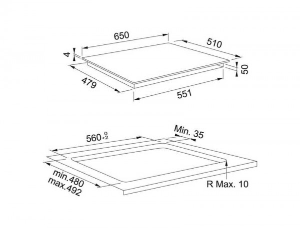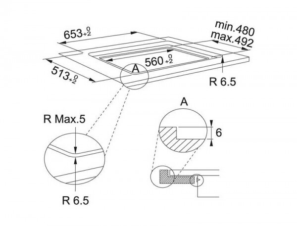 Размеры выреза 560 x 492 мм (при монтаже сверху), 653 x 513 мм, R 6,5 мм (при монтаже вровень со столешницей) Материал Черная стеклокерамика Безопасность Защита от перегрева, блокировка управления Таймер Есть