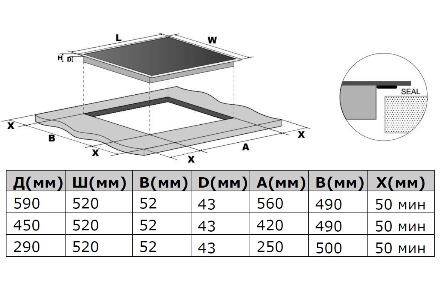 Индукционные нагревательные элементы: • 2 х 1.5-2 (бустер) кВт (передний левый и задний правый), ø 180мм • 2 х 1.2-1.5 (бустер) кВт (передний правый и задний левый) , ø 160мм