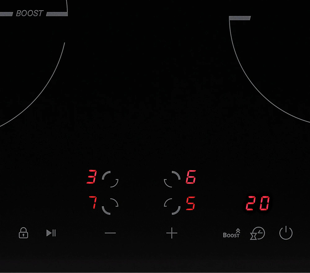 Функция паузы Stop&Go позволяет приостановить процесс приготовления и возобновить его без потери настроек при необходимости. Усилитель нагрева Booster обеспечивает быстрый нагрев конфорок до нужной температуры.