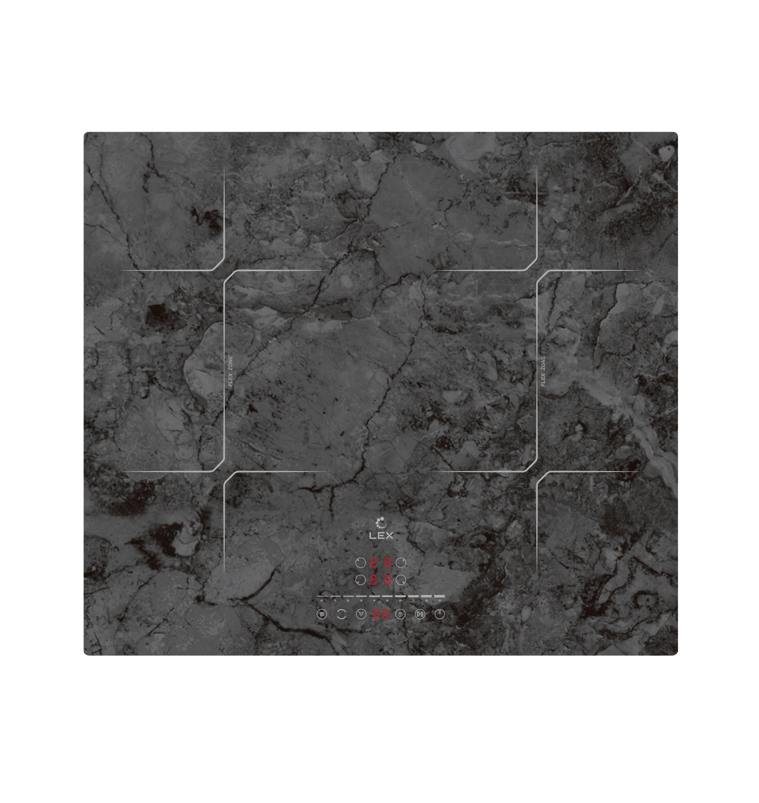 Электрическая индукционная варочная панель LEX EVI 640F DS имеет мраморный дизайн, четыре конфорки, сенсорное управление. Ширина для встраивания 600 мм. Современный индукционный нагревательный элемент демонстрирует высокую скорость нагрева, существенно экономит электроэнергию и сокращает время приготовления блюд. Модель снабжена кнопкой блокировки панели, индикатором остаточного тепла, защитой от перегрева, распознаванием наличия посуды. Наличие функции Boost позволяет ускорить процессы приготовления. Функция StopnGo дает возможность при необходимости одним нажатием приостановить и продолжить работу с сохранением температурных режимов и таймера. Панель имеет FlexZone расширенной конфигурации, которую удобно использовать для посуды нестандартных размера и формы. Корпус LEX EVI 640F DS изготовлен из специального изолирующего полимера толщиной 4 мм, которое избавляет от необходимости заземления.