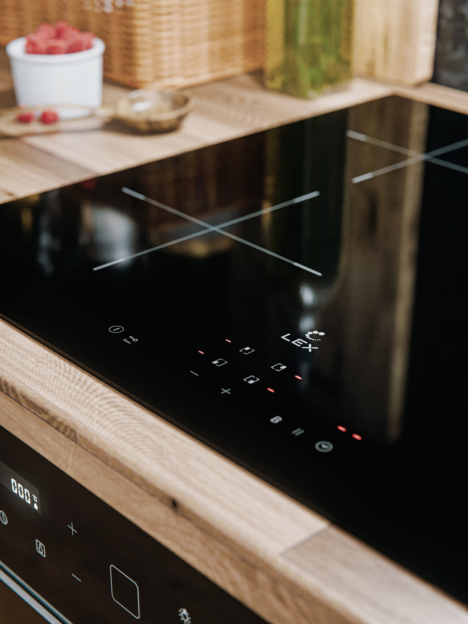 Электрическая индукционная варочная панель LEX EVI 640A BL имеет четыре конфорки и сенсорное управление. Ширина для встраивания 600 мм. Современный индукционный нагревательный элемент демонстрирует высокую скорость нагрева, существенно экономит электроэнергию и сокращает время приготовления блюд. Модель снабжена кнопкой блокировки панели, индикатором остаточного тепла, защитой от перегрева, распознаванием наличия посуды. Наличие функции Boost позволяет ускорить процессы приготовления. Функция StopnGo дает возможность при необходимости одним нажатием приостановить и продолжить работу с сохранением температурных режимов и таймера. Несмотря на общее мнение, что поверхность в индукционной плите не нагревается, это не совсем так. Она нагревается от самой посуды и нужно быть аккуратными. Сразу после снятия кастрюли или сковороды, поверхность горячая, хотя и практически мгновенно остывает. И уже через несколько секунд её можно трогать рукой.
