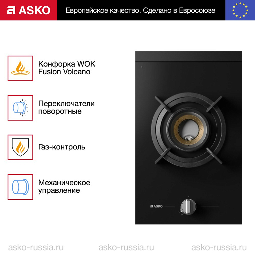 Конфорка всего одна. Но особенная. Конструкция Fusion Volcano Wok создает высокую температуру, которая эффективно фокусируется в центре используемой сковороды, не позволяя теплу распределяться по всему ее дну. Благодаря этой уникальной технологии, высокая температура поддерживается даже при добавлении большой порции ингредиентов одновременно. Такая мгновенная теплопередача позволяет приготовить настоящий паназиатский стрит-фуд прямо у себя дома. Расположение единственной конфорки продумано максимально — большие кастрюли не задевают заднюю стену. Эта конфигурация очень стильно выглядит и позволяет использовать массивные сковороды и воки даже в условиях ограниченного пространства.