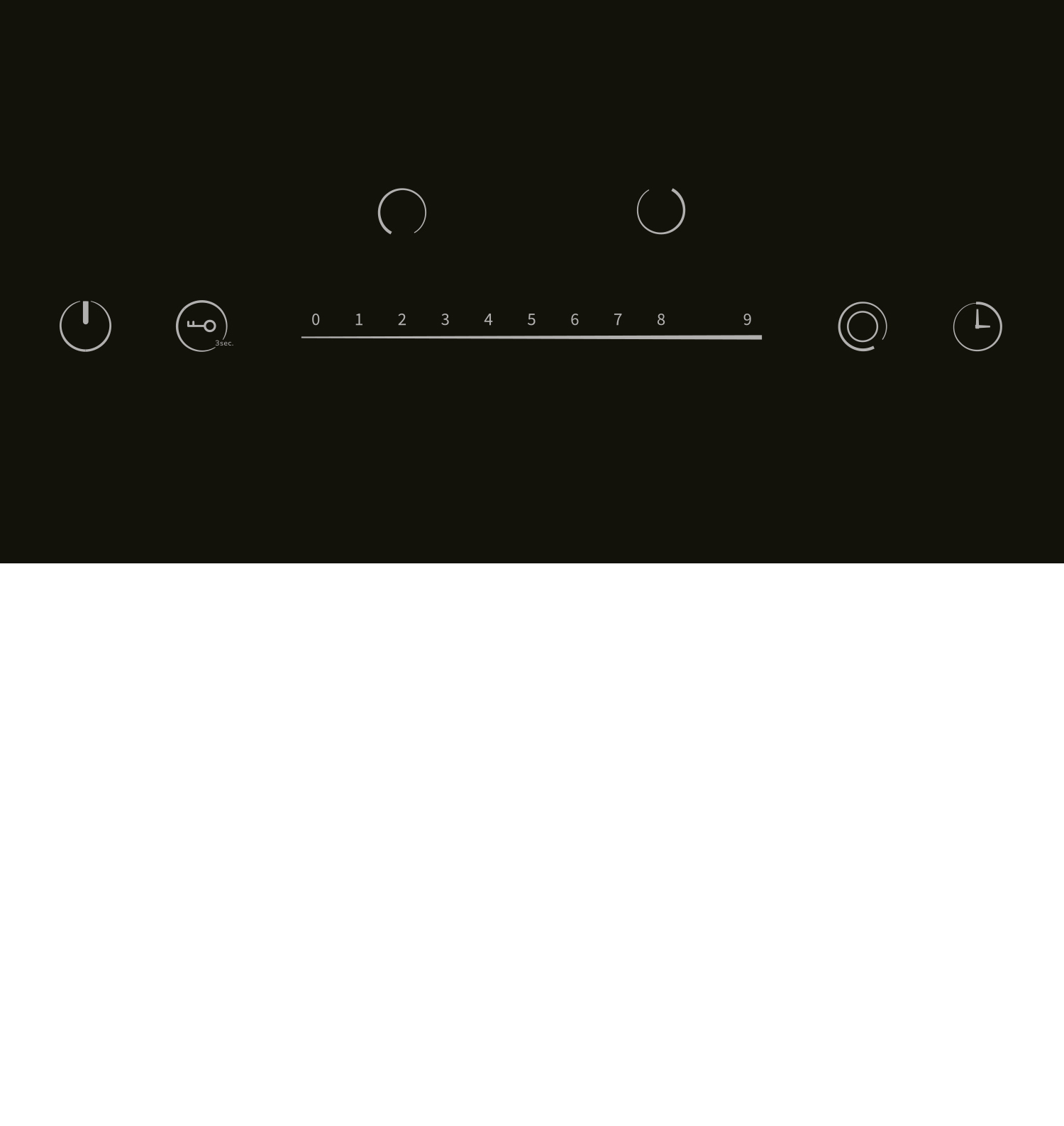 Функции безопасности Защита от перегрева, Индикатор остаточного тепла, Кнопка блокировки панели, Отключение при выкипании Таймер конфорок Есть
