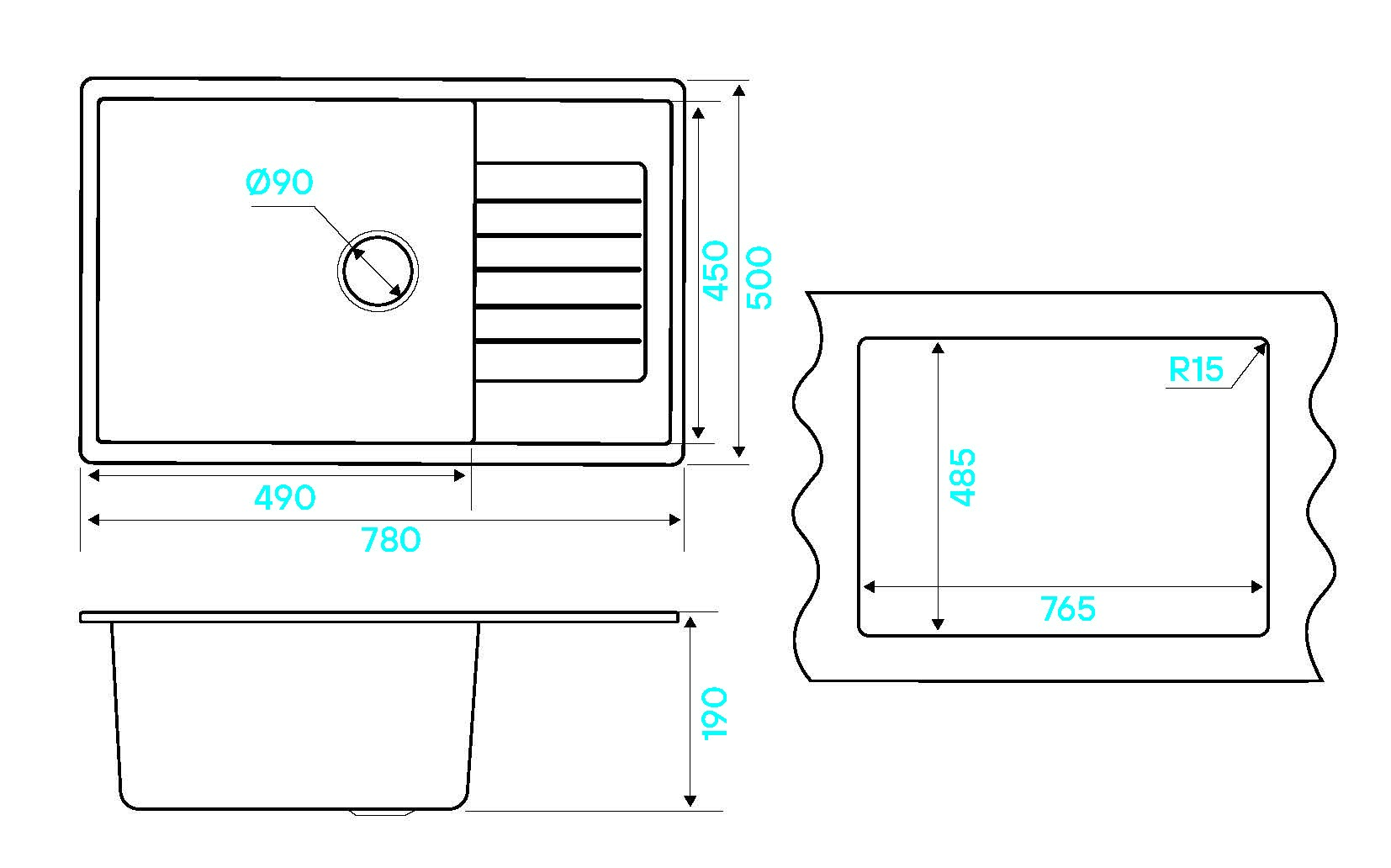 Врезной в столешницу свреху