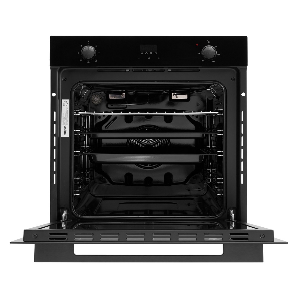 Особенности духового шкафа алюминиевая ручка дверцы духовки / цифровые часы с будильником / телескопические направляющие 1 уровня / хромированные направляющие / таймер автоматического отключения