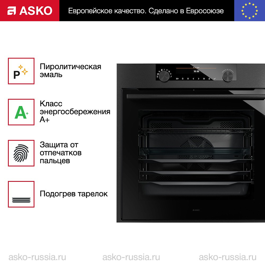 Горячий воздух остается внутри за счет плотно закрывающейся дверцы с тройным стеклом. Духовой шкаф Аско ОР8687B оборудован тангенциальной системой охлаждения. Такая система благодаря мощному вентилятору создает вокруг девайса воздушный барьер. Движущийся в нем воздух препятствует утечке тепла и позволяет защитить от перегрева как поверхность техники, так и кухонную мебель, в которую она установлена.