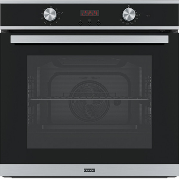 Духовой шкаф Franke FSM 86 НE XS с фасадом из черного закаленного стекла и обрамлением из нержавеющей стали. Модель из серии Smart имеет 9 функций приготовления, цифровой дисплей с красной подсветкой, металлические боковые направляющие и таймер. В комплект входят глубокий и обычный противни, 2 решетки.