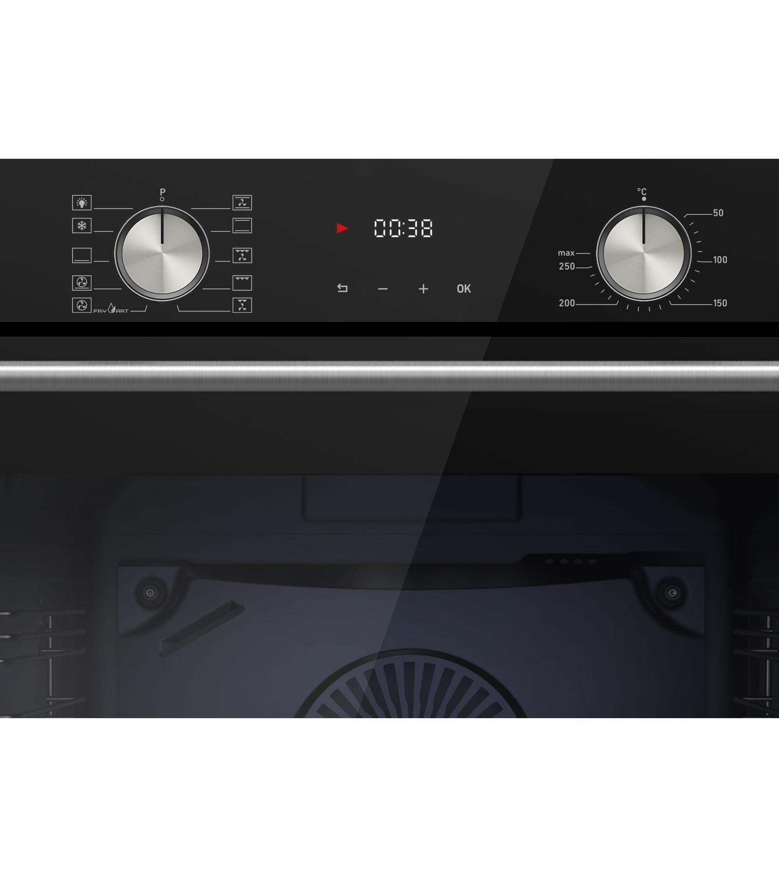 ‒ 10 программ, цифровой таймер, эмаль легкой очистки, конвекция, гриль, утапливаемые ручки, 1 стандартный противень+глубокий противень, решетка для гриля, кольцевой нагревательный элемент, 3 стекла low-e, наружное стекло ShottCeran, задняя стенка - каталитическая, гидролизная очистка, активное освещение, телескопические направляющие, доводчик