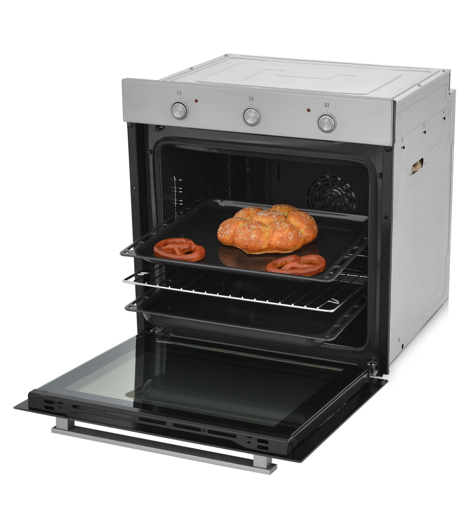 Наличие в дверце духового шкафа трёх стёкол отлично сказывается на теплоизоляции, качестве и быстроте приготовления блюд. Кроме того, внешнее стекло духовки всегда остается холодным или чуть теплым, что обеспечивает защиту от ожогов при случайном прикосновении.