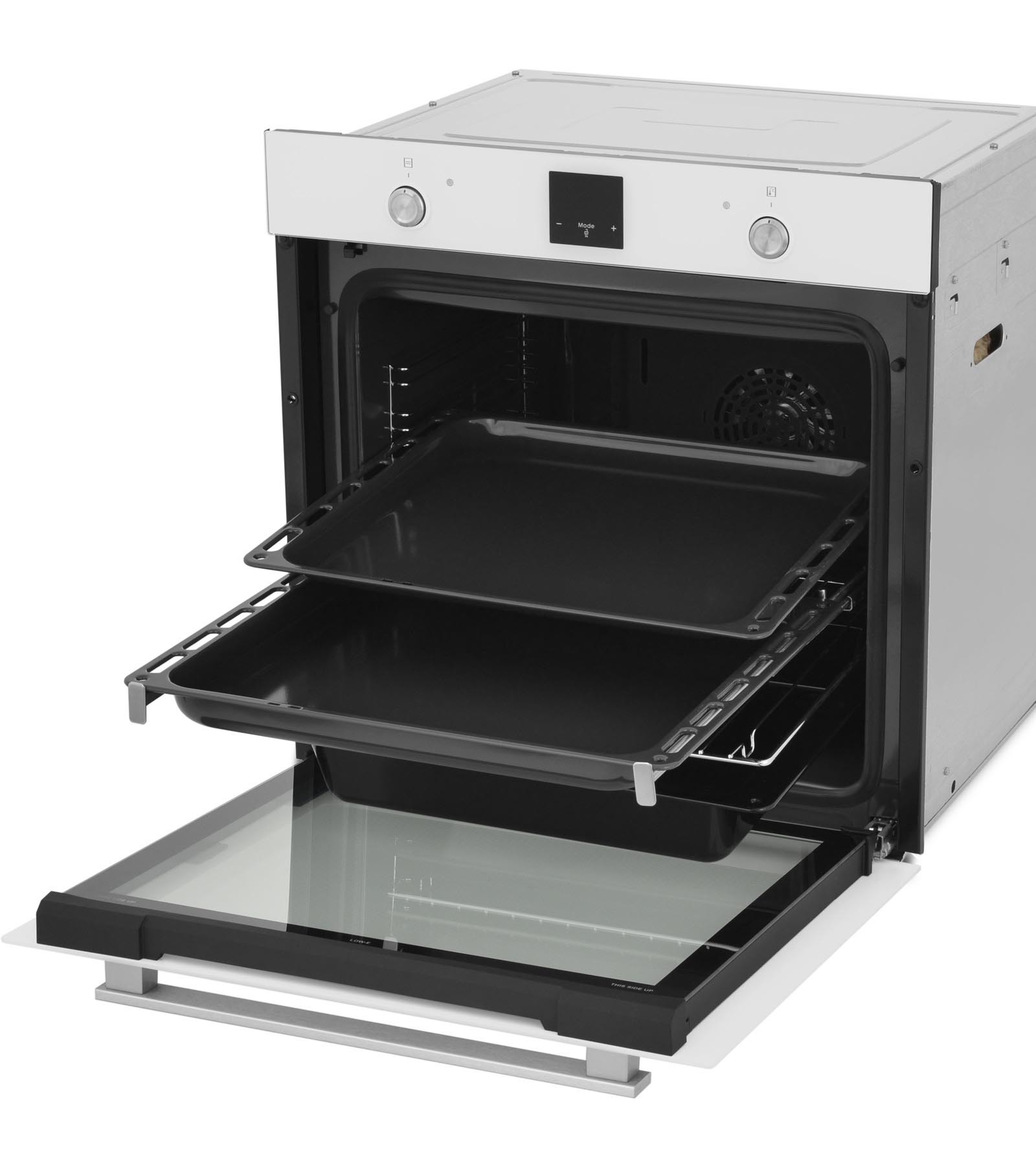 Специальное стекло E-Low и дополнительные 3 стекла дверцы оказывают теплоизоляционное воздействие, что влияет на качество и быстрое приготовление блюд. Внешнее стекло всегда остаётся прохладным или немного тёплым, что обеспечивает защиту при случайном прикосновении к дверце
