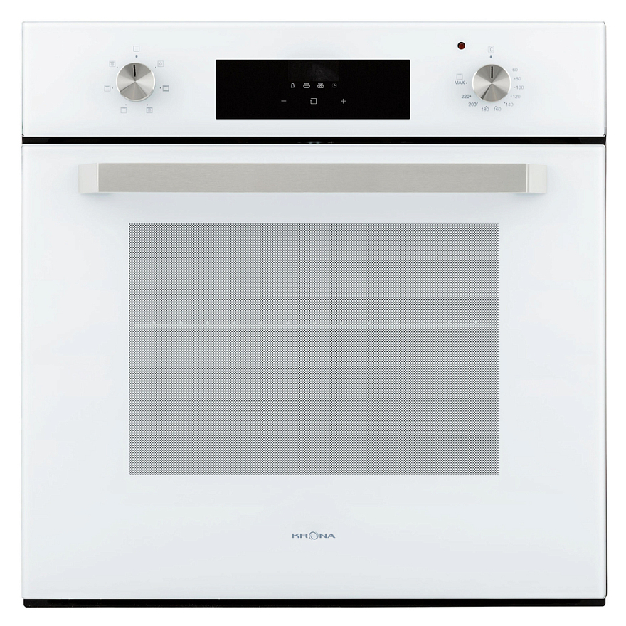 Духовой шкаф Krona ONORE 60 WH G2 оснащен дисплеем на котором отображаются часы и электронный таймер. При перегреве устройства произойдёт автоматическое отключение. Имеется тангенциальное охлаждение, рядом стоящая мебель не будет нагреваться.