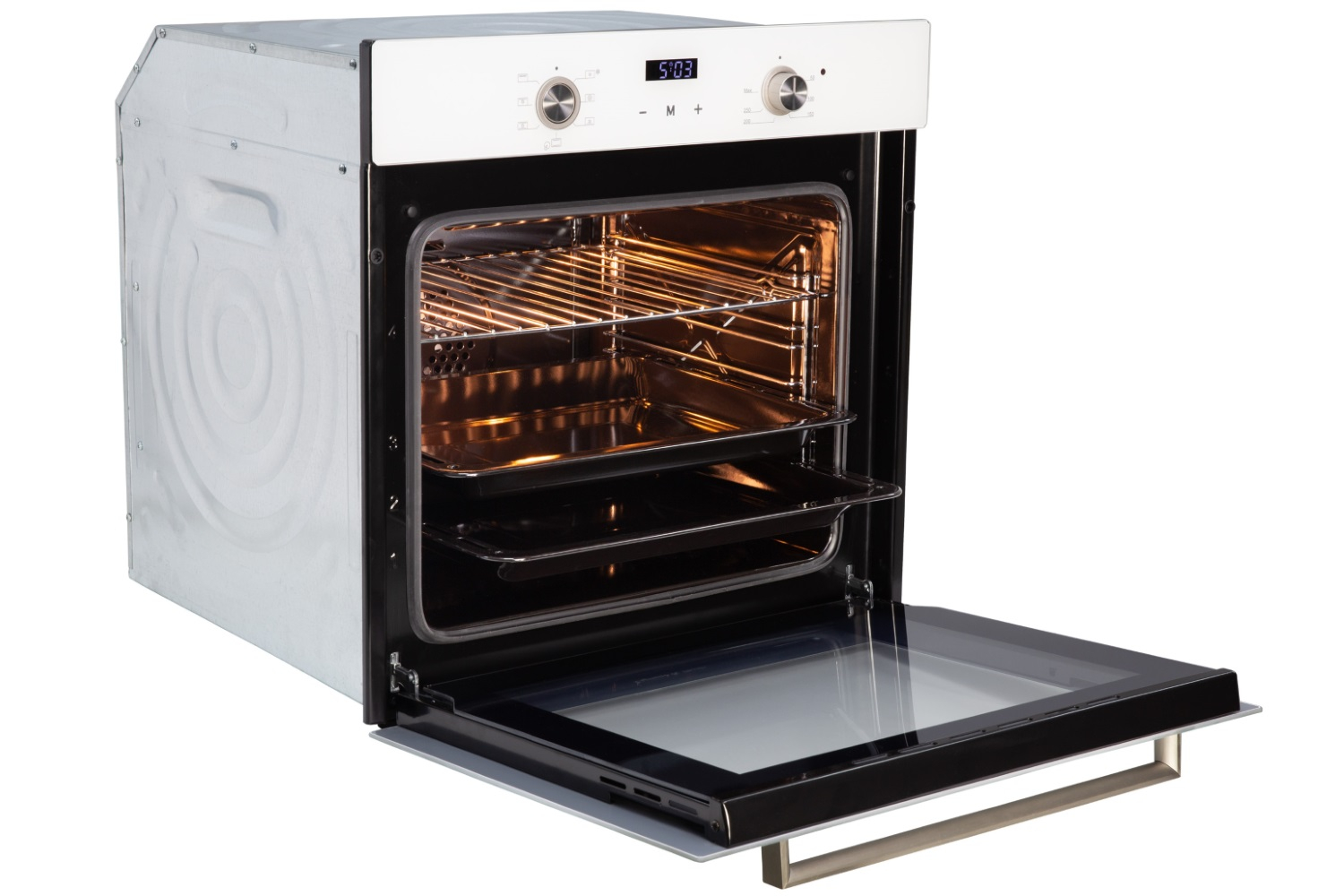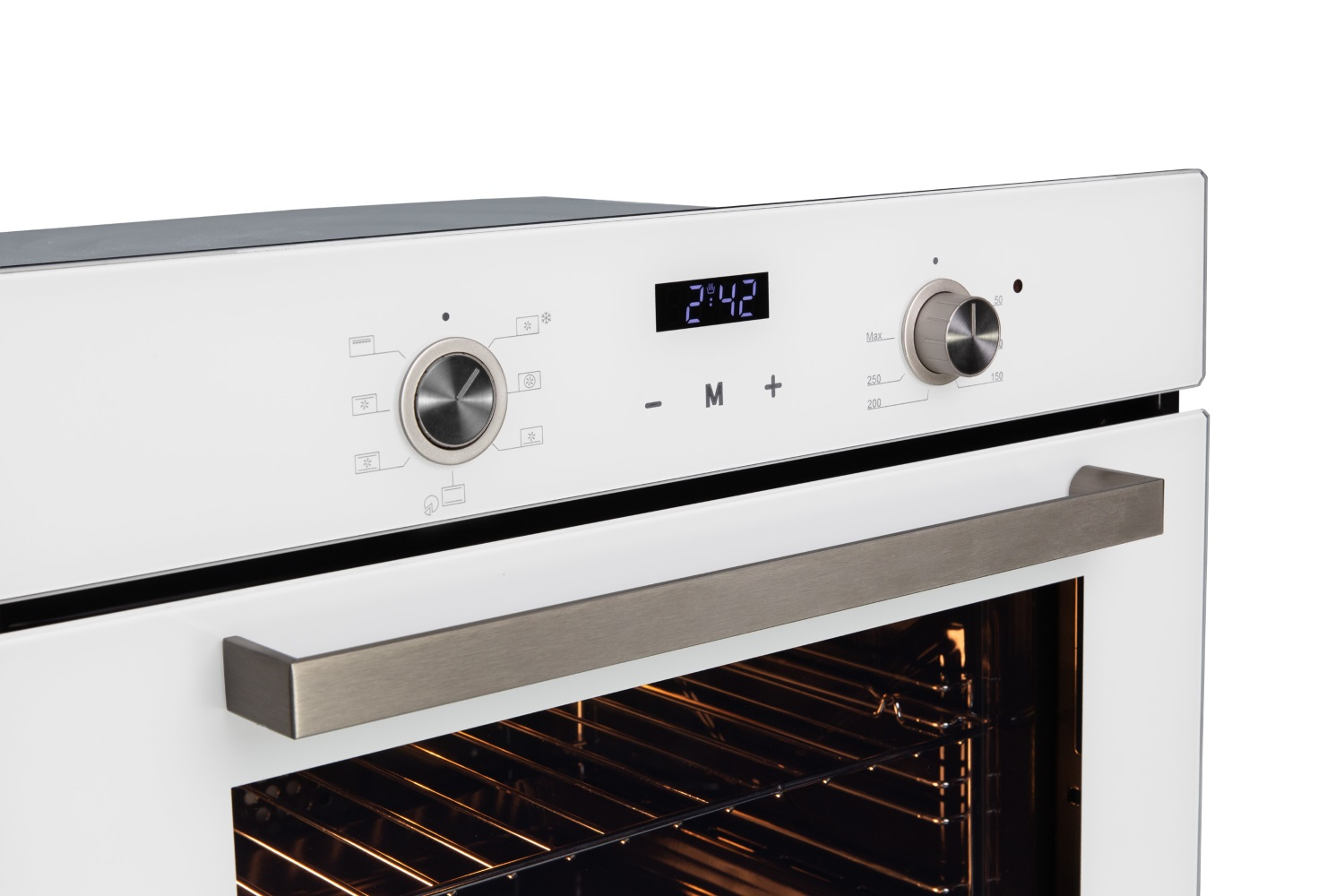 Электрическая духовка Zigmund Shtain E 153 W отлично подойдет для современной кухни. ведь ее фасад выполнен в белом цвете. Металлическая ручка дверцы. Утапливаемые переключатели и механический программатором сделают более комфортным уход за панелью управления, сам программатор даст Вам возможность установить момент включения, время работы с последующим отключением с выводом информации на цифровой дисплей. Общие параметры: Класс энергопотребления А, Тангенциальное охлаждение, Хромированные боковые направляющие, Два съемных стекла дверцы, Панорамное внутреннее стекло Smart Eye, Утапливаемые ручки управления, Сенсорный дисплей, Холодный фронт, Механический таймер с отключением, Металлическая ручка дверцы, Эмаль легкой очистки, Освещение. Комплектация: 1 решетка, 1 противень, 1 глубокий противень Функции: Задний кольцевой нагреватель с конвекцией, Верхний и нижний нагреватель, Верхний и нижний нагреватель с конвекцией, Верхний нагреватель с конвекцией, Нижний нагреватель с конвекцией, Разморозка, Гриль.
