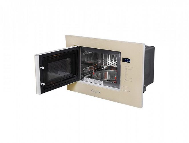 Встраиваемая микроволновая печь Lex Bimo 20.01 IVORY выполнена в бежевом корпусе, в оформлении которого нет ничего лишнего. В работе устройство сочетает микроволны и гриль, что позволяет не только разогревать пищу, но и готовить полноценные блюда. Для этого внутрь камеры устанавливается решетка для гриля, на которую вы можете положить рыбу, овощи или мясо, подставив предварительно широкую посуду: в нее будет стекать лишняя жидкость. Кроме того, печь поддерживает высокопроизводительную разморозку. Lex Bimo 20.01 IVORY обладает внутренним объемом 20 л. Мощность прибора соответствует 700 Вт, что обеспечивает высокую производительность при разогреве пищи и размораживании продуктов. Справа от дверцы находится сенсорная панель с дисплеем, что обеспечивает комфортную настройку: интуитивно понятное меню не вызовет сложностей, и вы сможете быстро включить желаемый режим и время, которое требуется для работы. Модель поддерживает отсрочку старта и функцию блокировки от детей.