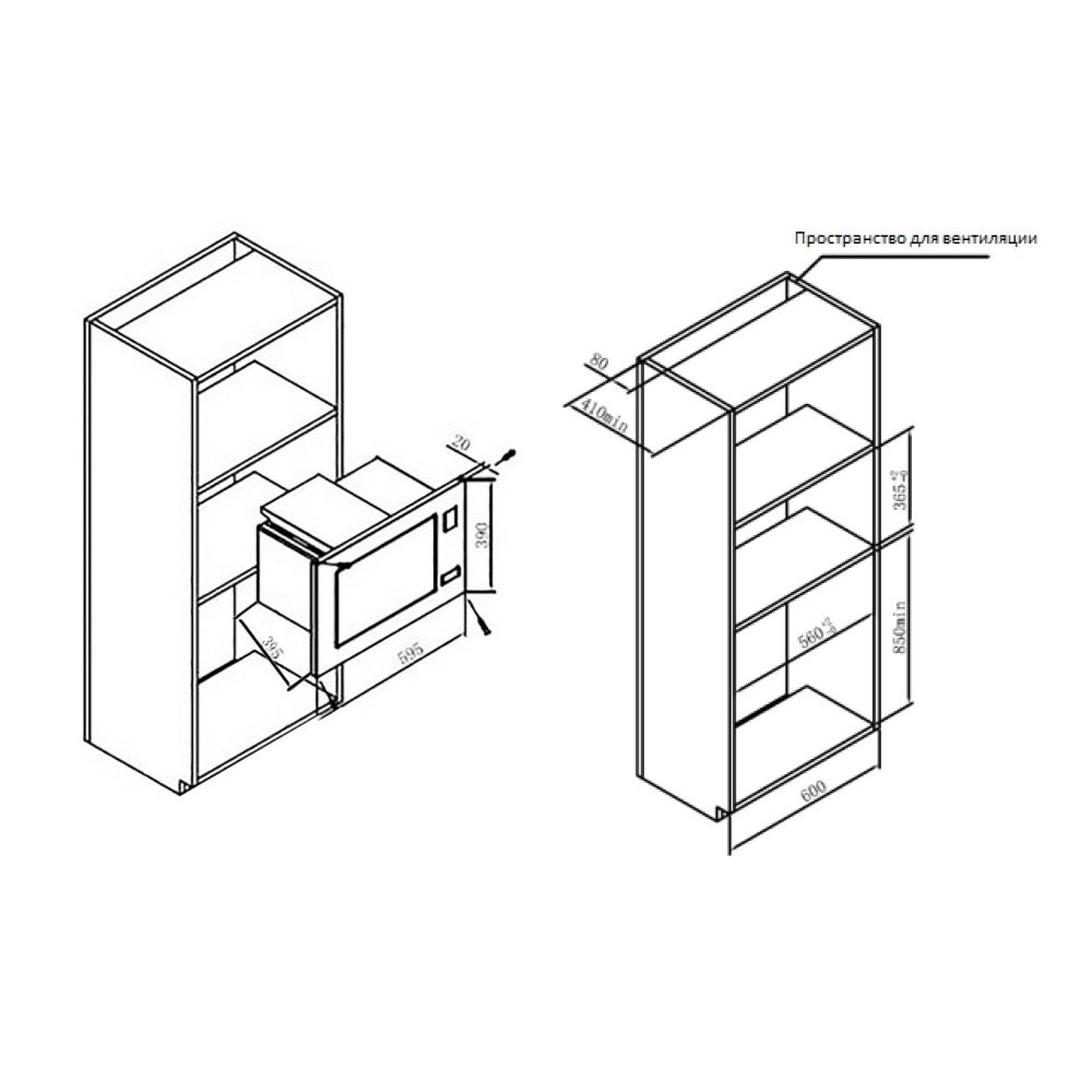 Размеры прибора (ШхГхВ): 595х395х390, толщина панели 20