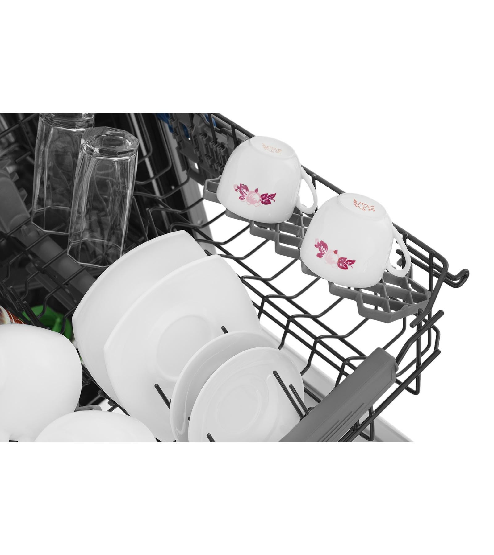 Средняя полка c возможностью регулировки по высоте является дополнительной зоной для мытья вилок, ложек, кофейных чашек и помогает использовать внутреннее пространство посудомоечной машины более эффективно.