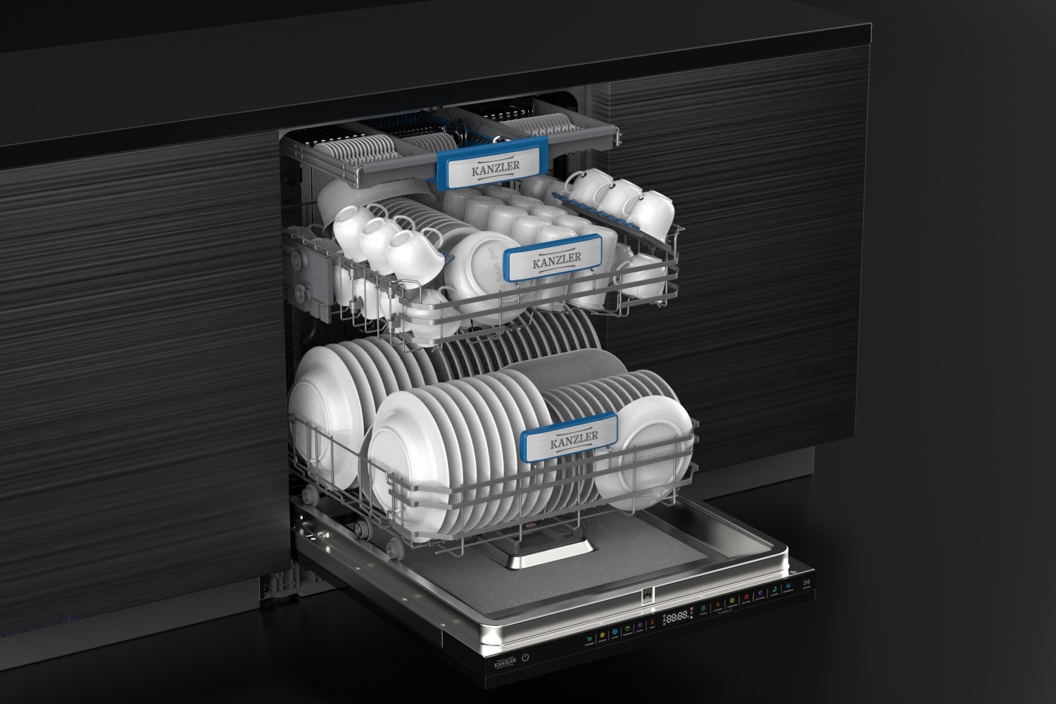 16 комплектов посуды, Сенсорный дисплей, Световая индикация, Защита от перелива, Половинная загрузка, Отложенный старт, 3 корзины с усилением, Продолжение цикла, Удерживание дверцы, 3 фильтра, Автопрограмма, Программа гигиена, Двигатель инверторный, Освещение моющей камеры, Индивидуальные настройки