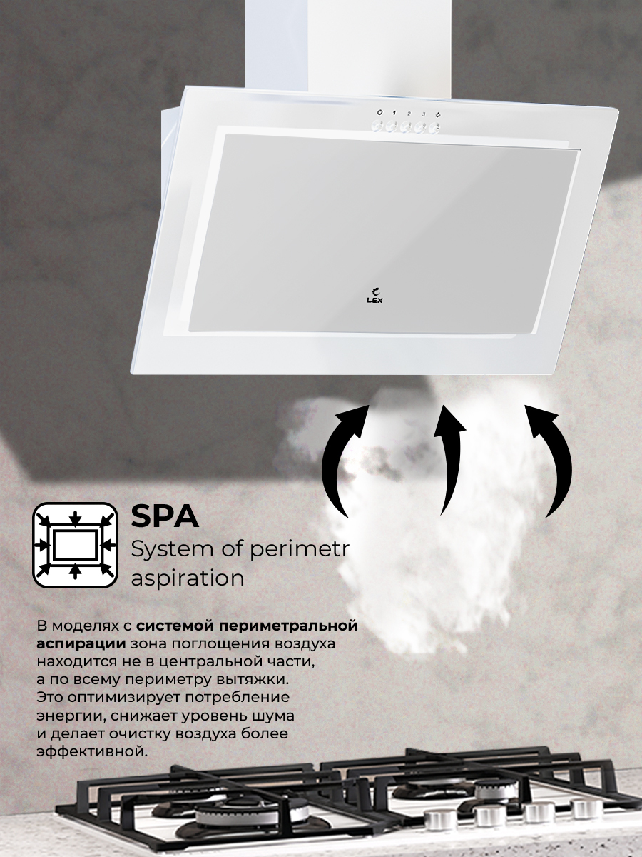 Современная вытяжка LEX MIO G 500 представляет собой совокупность передовых технологий, доступных по цене. Ее ширина составляет 500 мм, а корпус и передняя часть выполнены из стекла, что делает модель универсальной и стильной для различных дизайнерских решений. Вытяжка обеспечивает высокую производительность, сохраняя при этом комфортный уровень шума, позволяющий разговаривать без повышения голоса в помещении с работающей вытяжкой. В комплекте также имеется надежное механическое управление, телескопический короб и обратный клапан. Вытяжка может быть подключена как к системе вентиляции для отвода воздуха, так и в режиме рециркуляции воздуха. Кроме того, LEX MIO G 500 оснащена комфортной светодиодной LED-подсветкой.