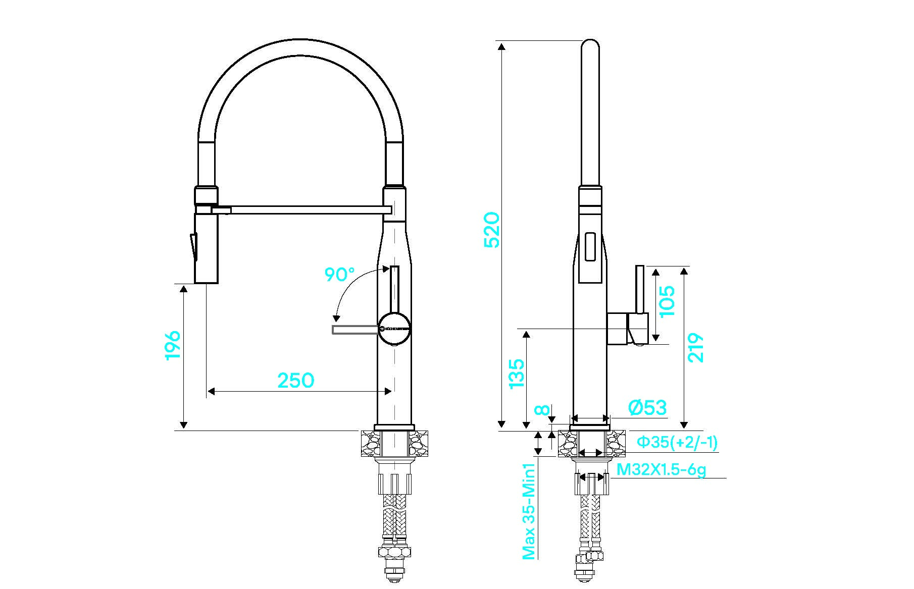 Главная Интернет-магазин Смесители KUCHENSTERN KERN-E нержавеющая сталь