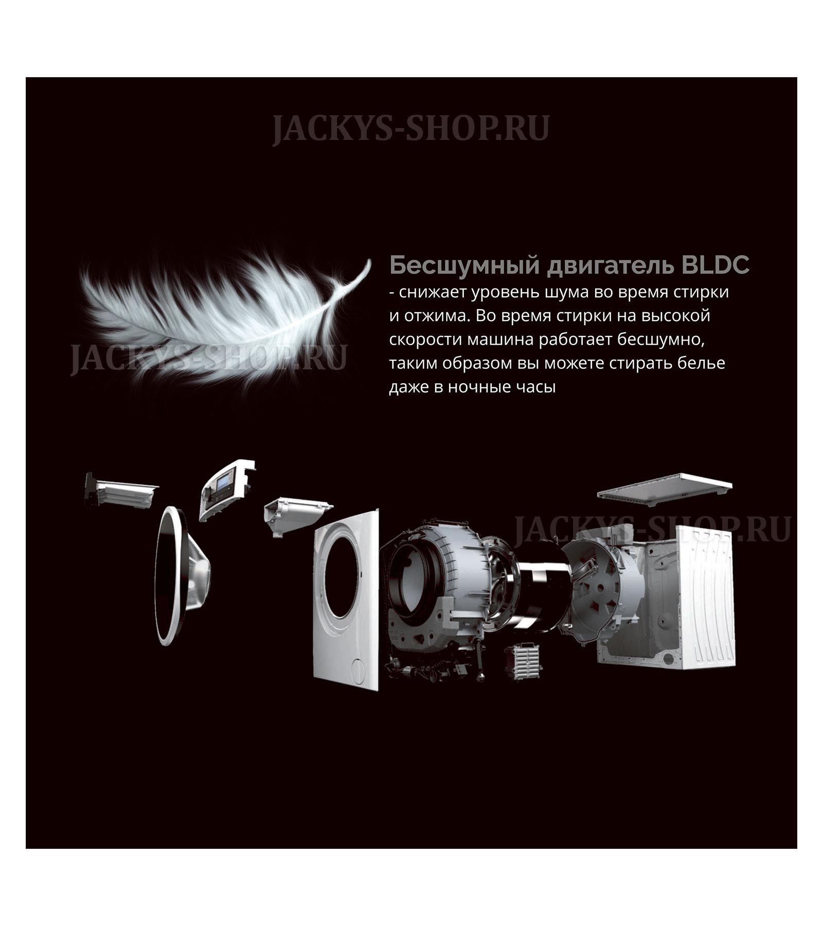 Благодаря специальному дизайну внешней части корпуса снижается вибрация во время стирки и отжима. Тихая работа стиральной машинки способствует удобному времени загрузки.
