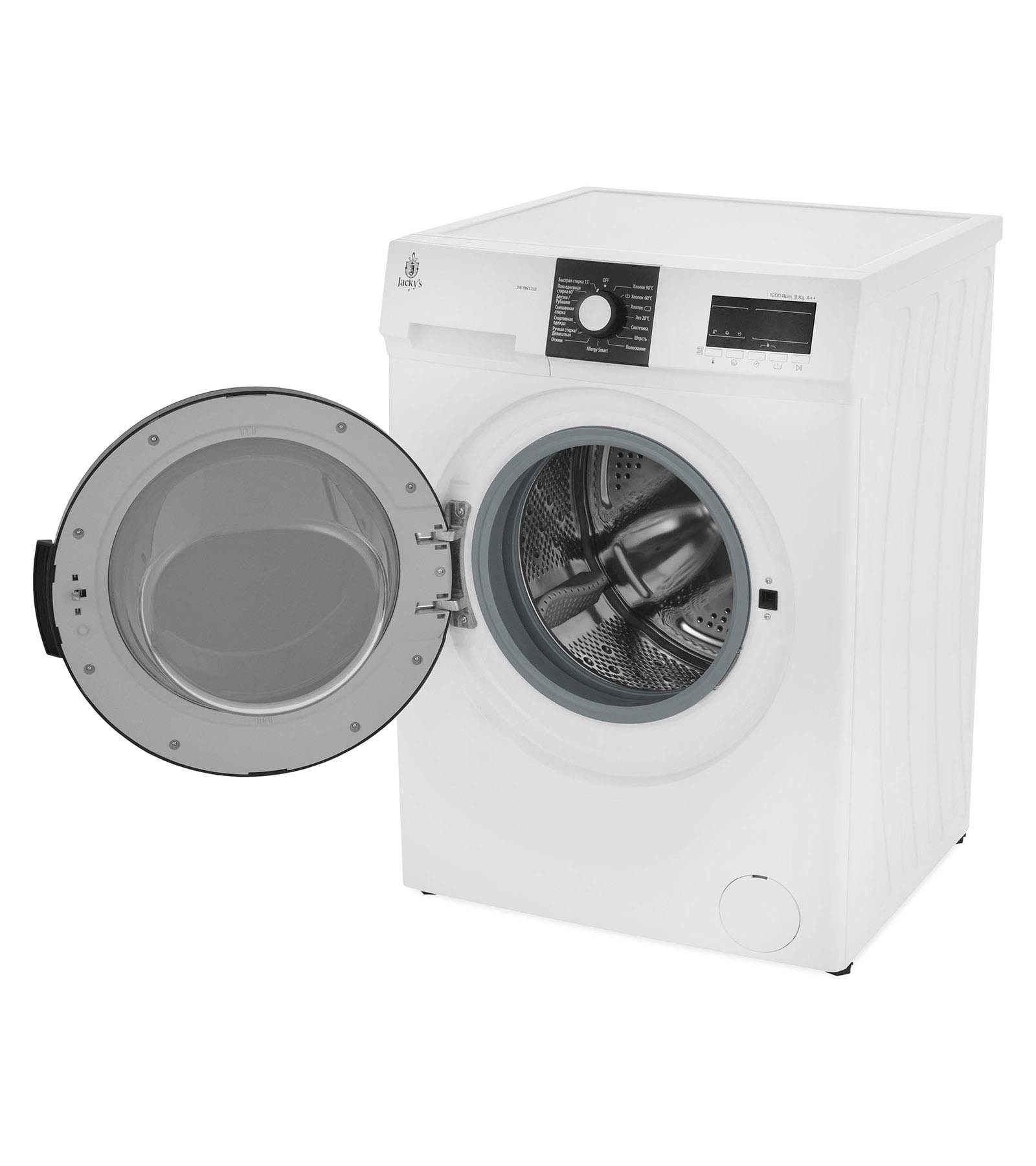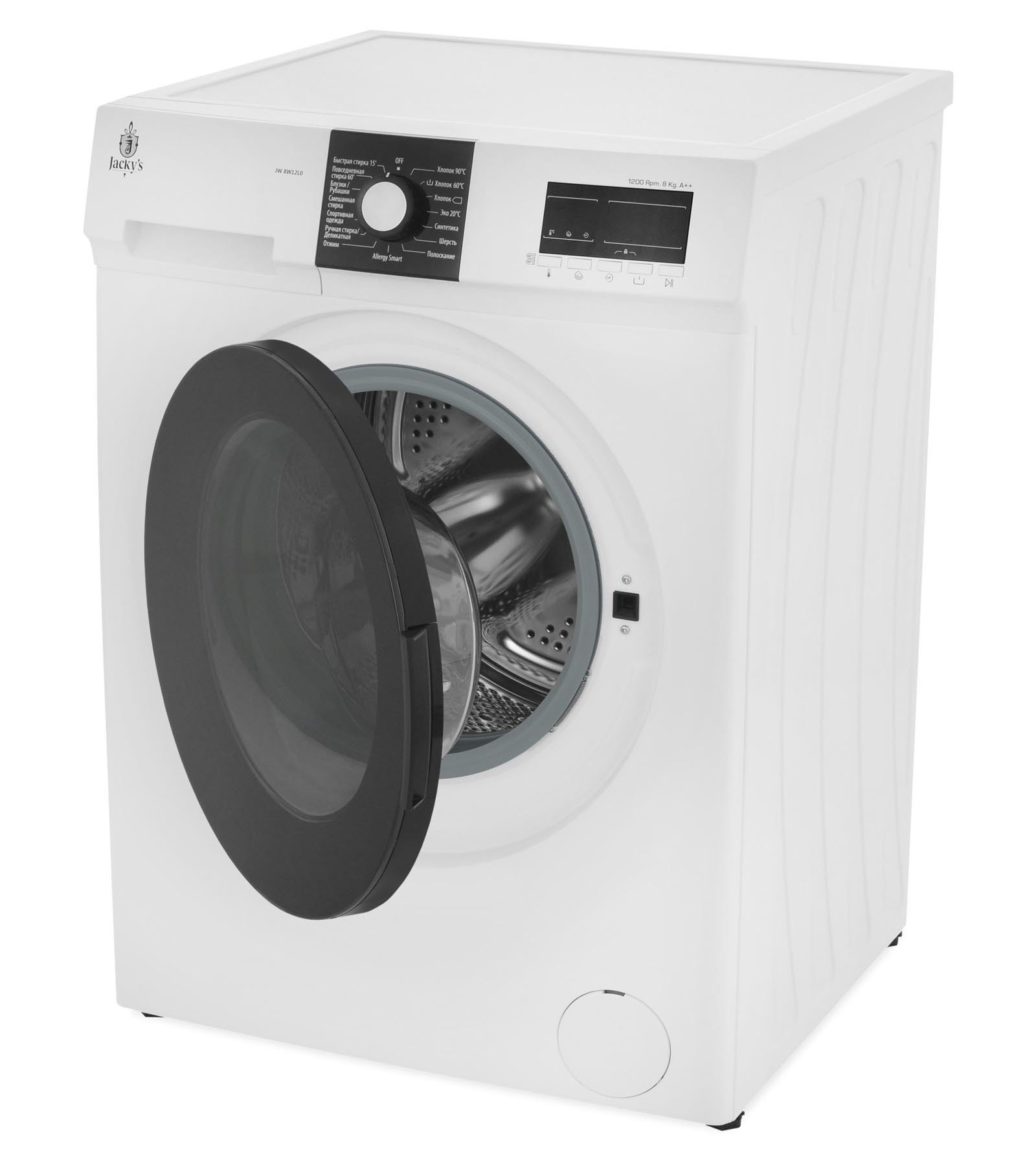Стиральная машина Jacky’s JW8W12L0 с загрузкой 8 кг и скoростью отжима до 1200 оборотов в минуту.