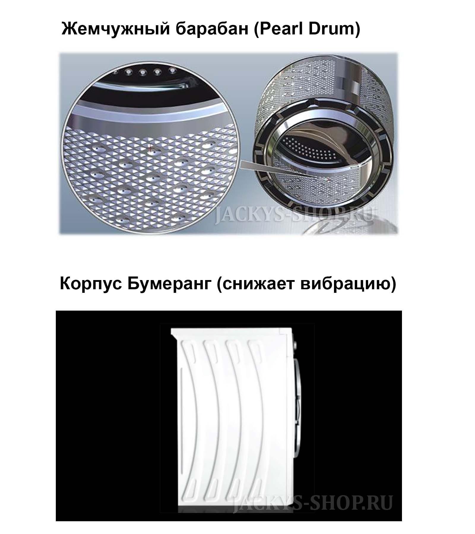 Жемчужный барабан обеспечит защиту вещей от износа и повреждений. Стирка вещей стала еще деликатнее.