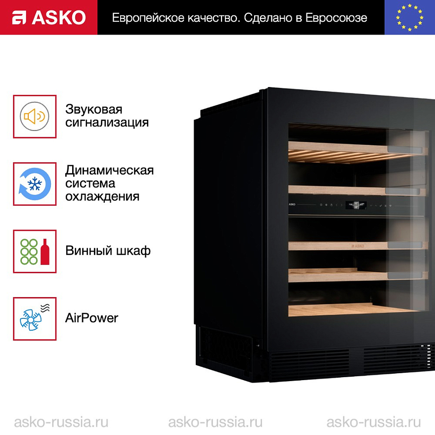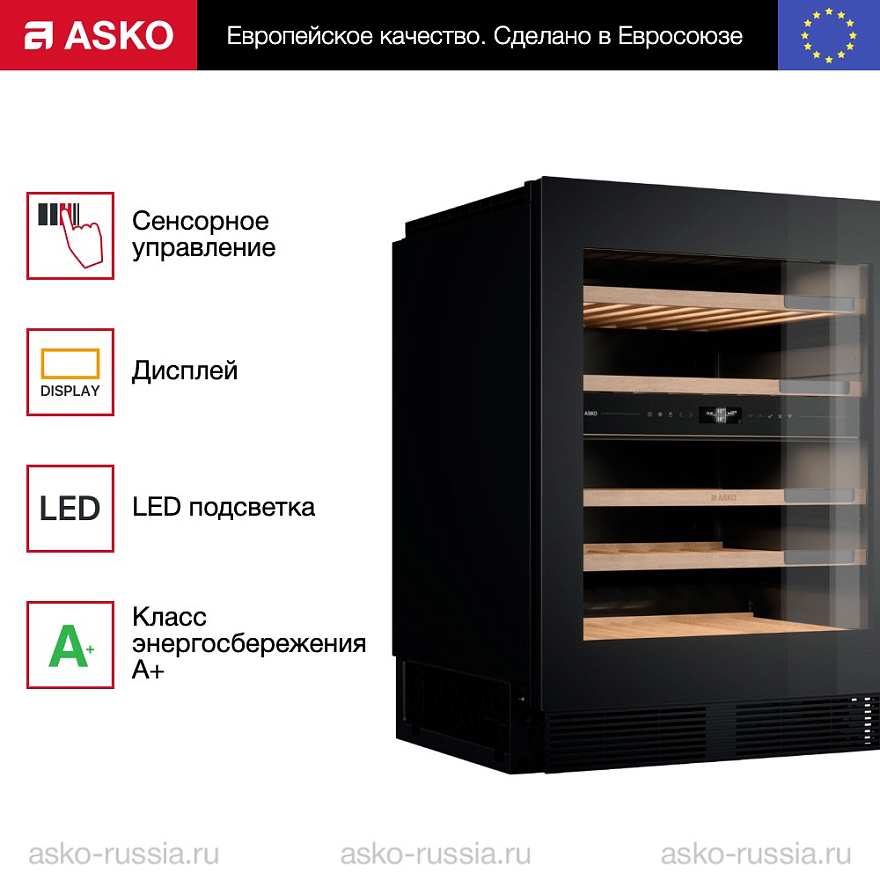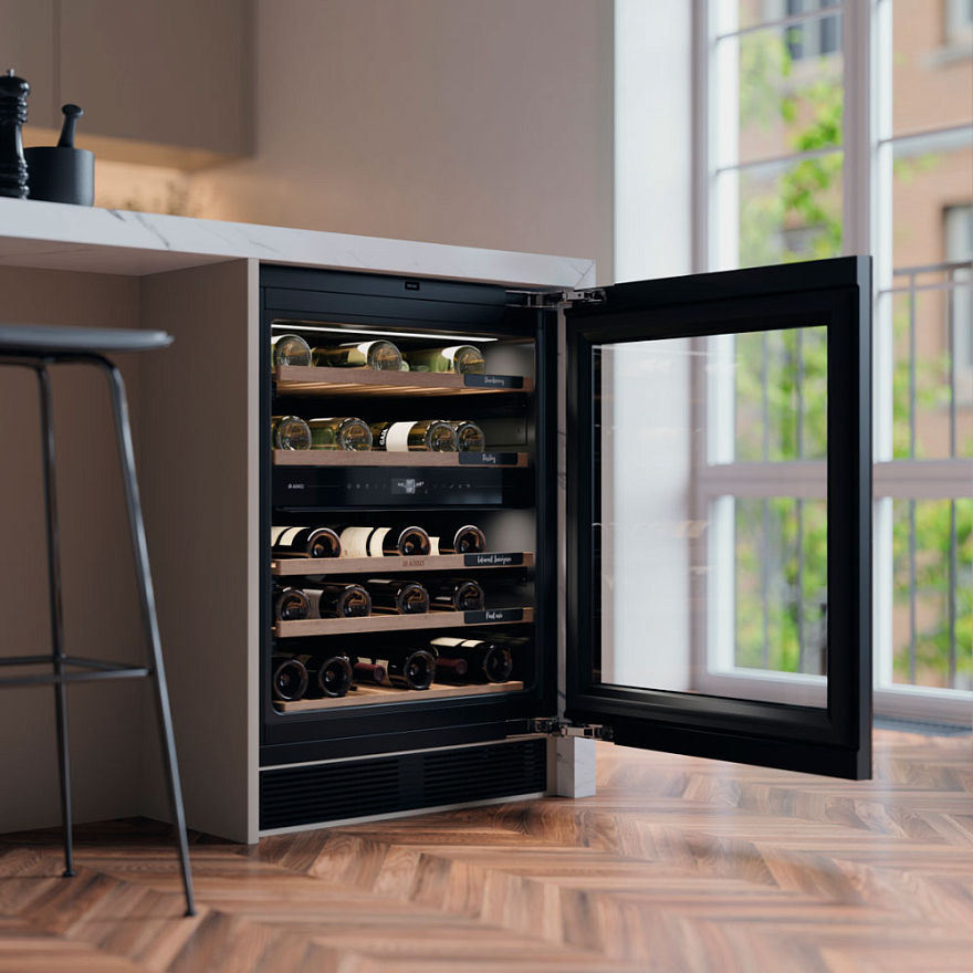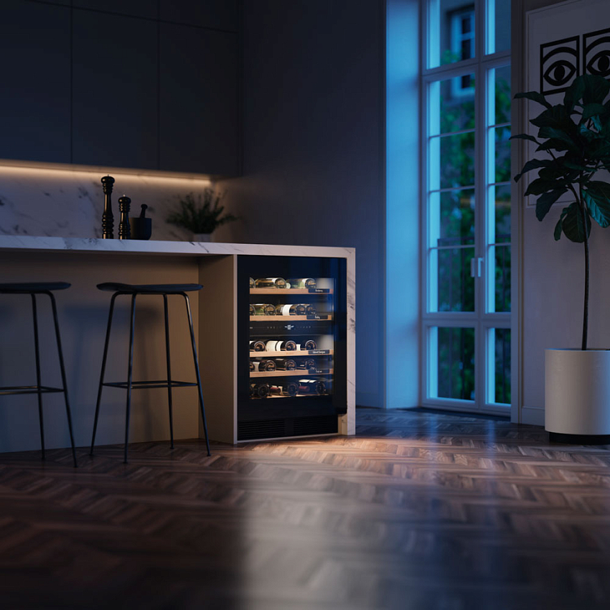 Компрессор обеспечивает равномерное охлаждение воздуха внутри шкафа, а автоматическая система размораживания избавляет от необходимости вручную удалять иней и поддерживать оптимальные условия хранения. Стеклянная дверь придает модели элегантный вид, делая его не только функциональным, но и декоративным элементом интерьера. Длина кабеля подключения — два метра, так что можно ставить не вплотную к розетке. Модель очень тихая, всего 35 дБ. При работе компрессор издает звук не громче шепота. Идеально подойдет для домашнего использования, для бара или ресторана, а также для офиса или гостиничного номера, обеспечивая вашим гостям возможность насладиться изысканными винами в любое время.